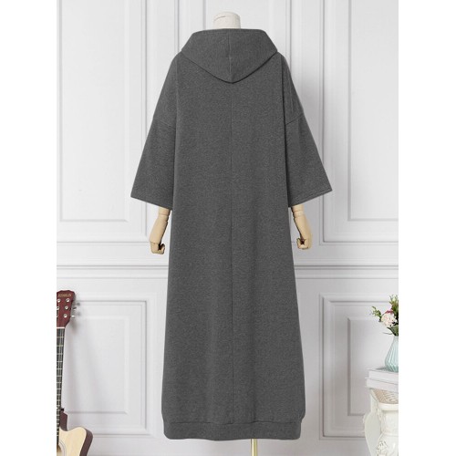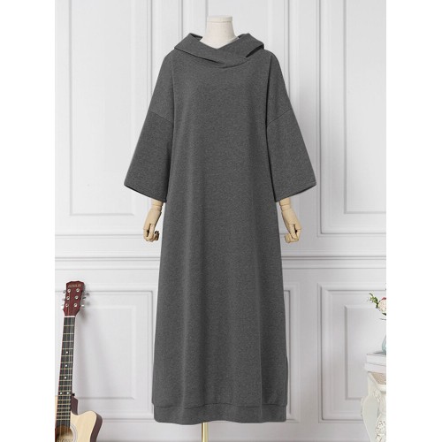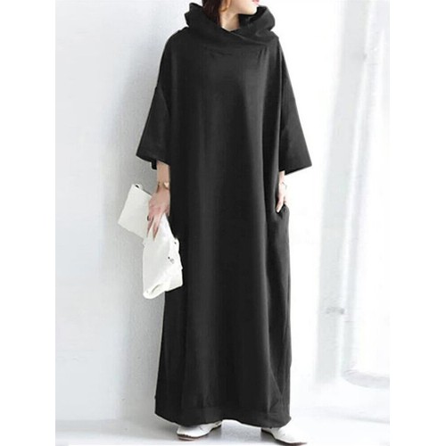 Women Loose Sweatshirt Maxi Length Side Pockets Hooded Midi Dresses