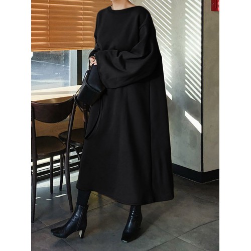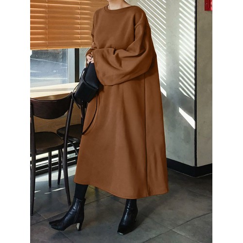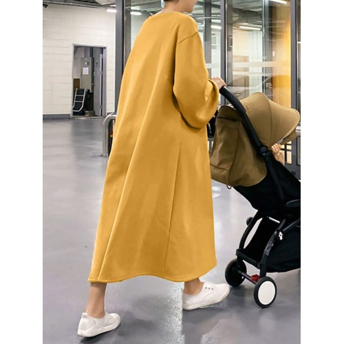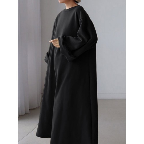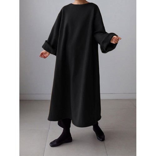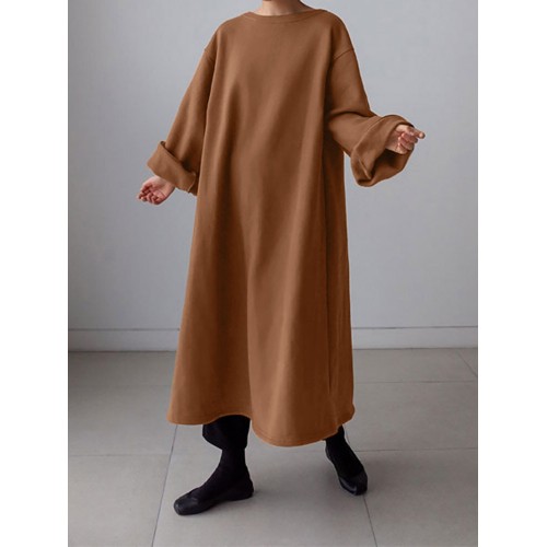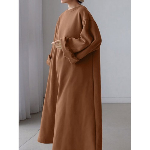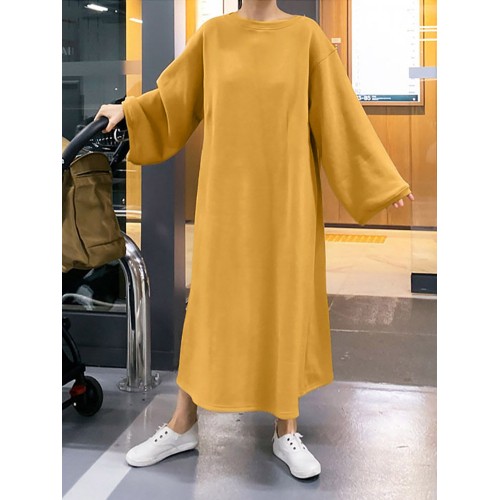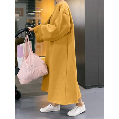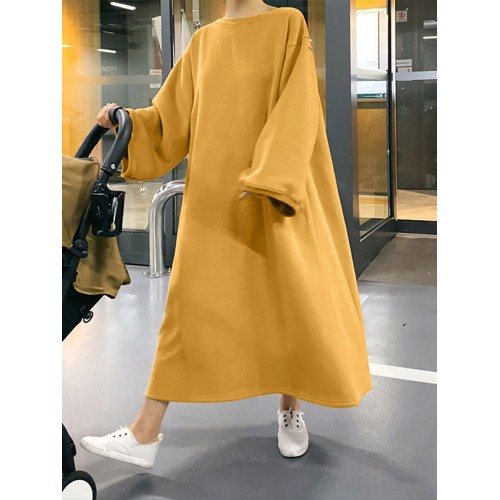 Women Loose Thick Sweatshirt Solid Calf Length Casual Midi Dresses