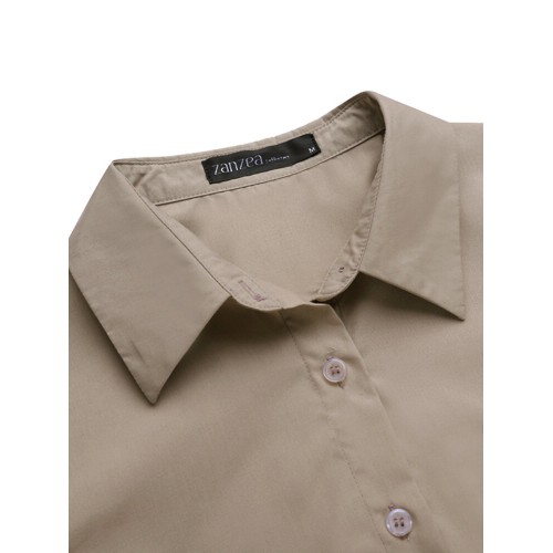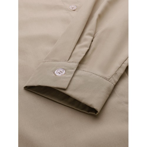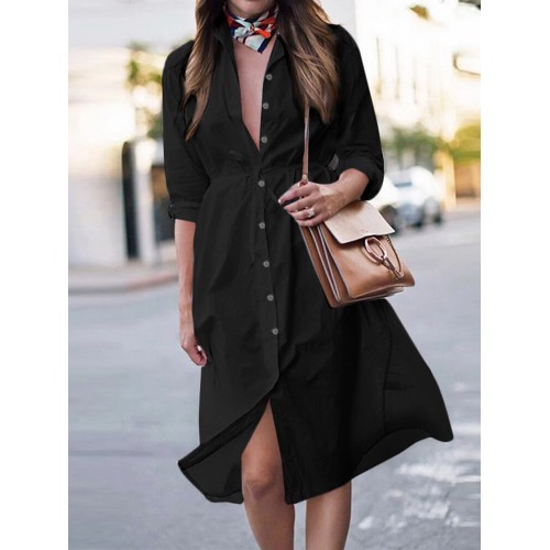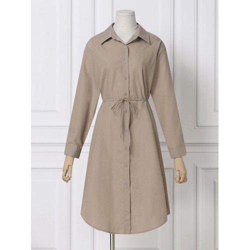 Women Shirt Solid Color Lace up Cuff Buttons Long Sleeve Casual Midi Dresses