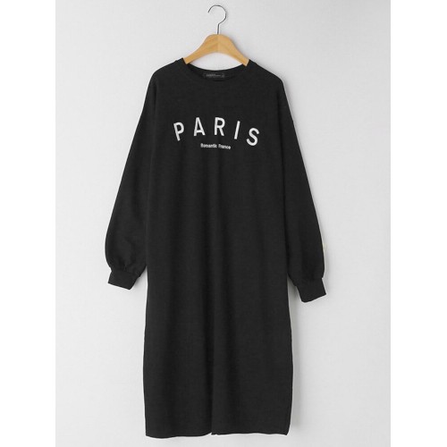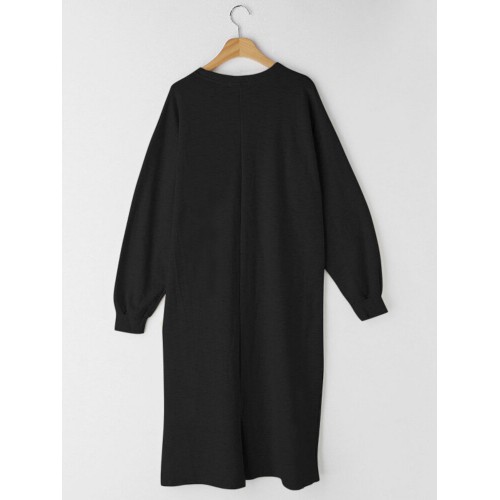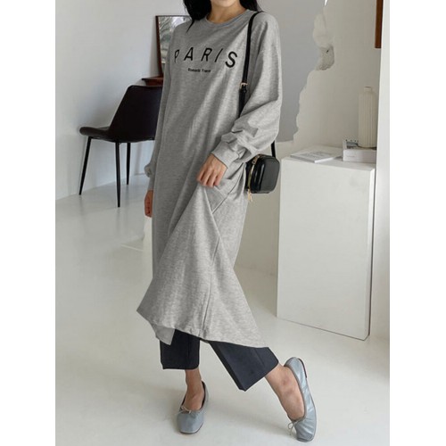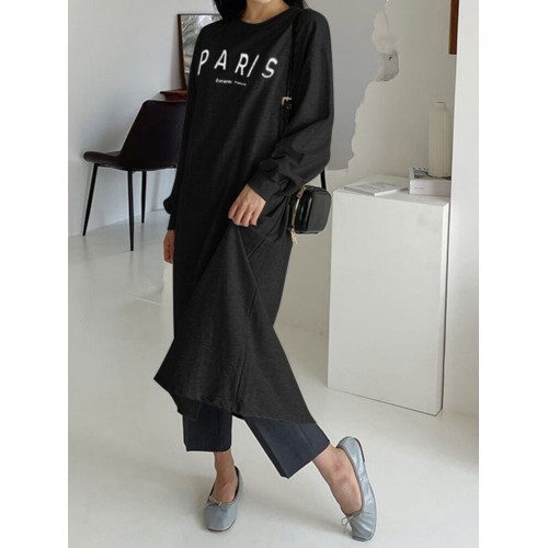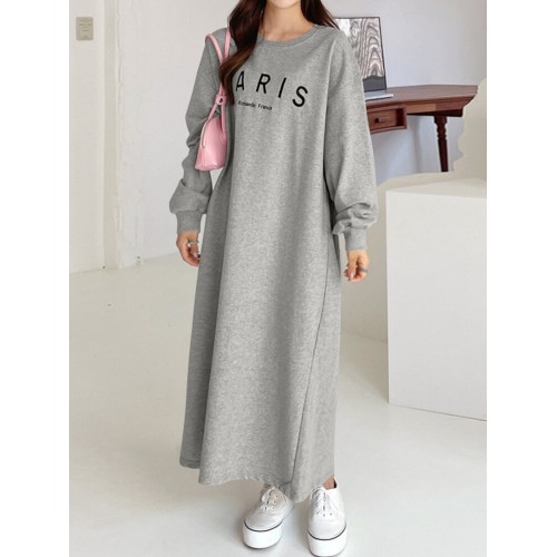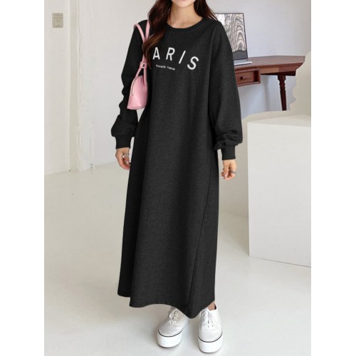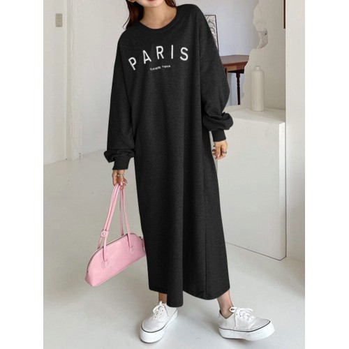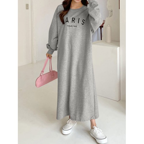Women Sweatshirt Letter Printed Calf Length O Neck Casual Midi Dresses