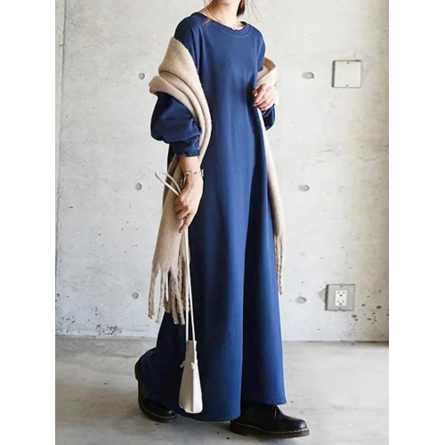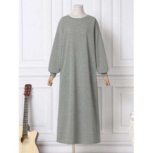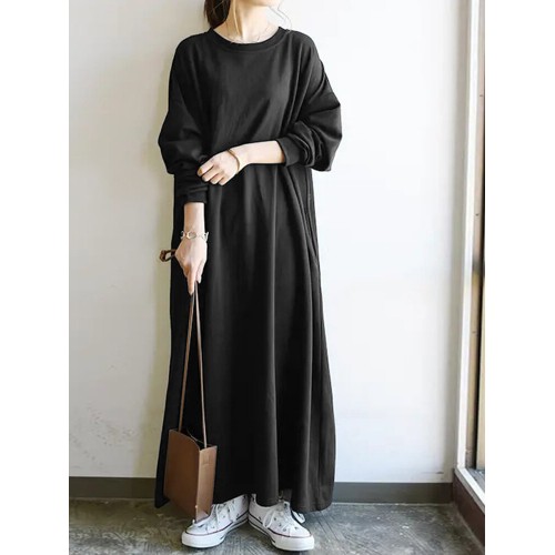 Women Sweatshirt Solid Side Pockets Maxi Length Casual Midi Dresses