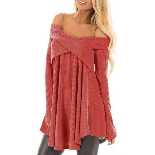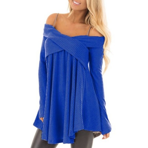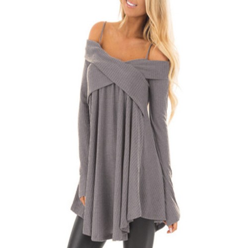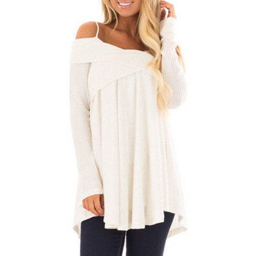 Sexy Off Shoulder Irregular Hem Women Knit Sweaters