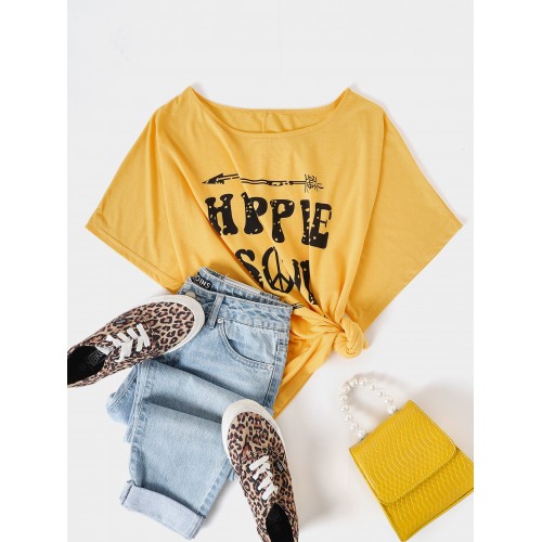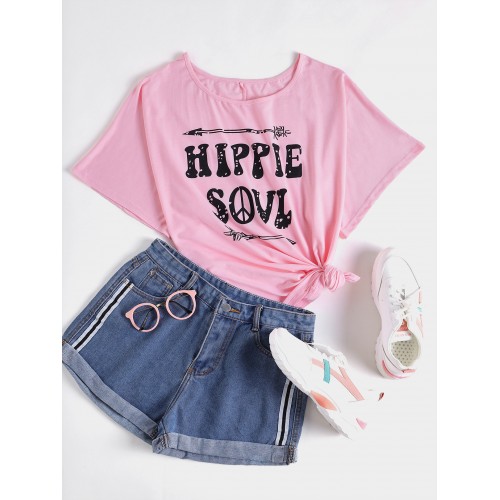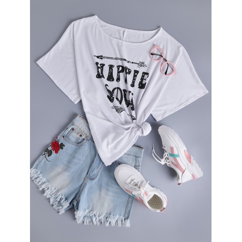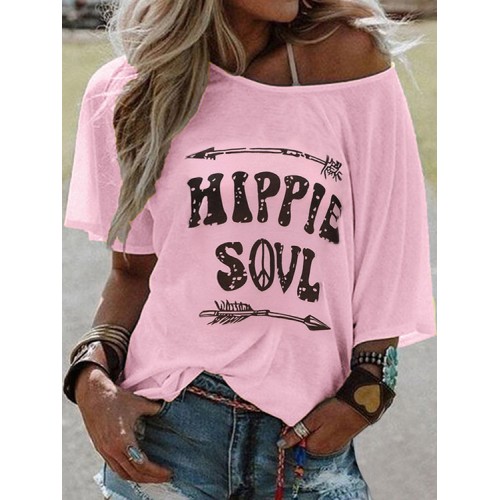 Casual Letter Print Round Neck Short Sleeve T shirts