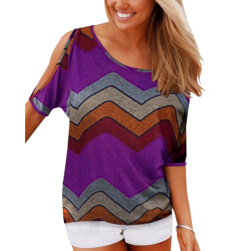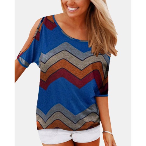 Cold Shoulder Crew Neck Floral Print Casual T shirts For Women